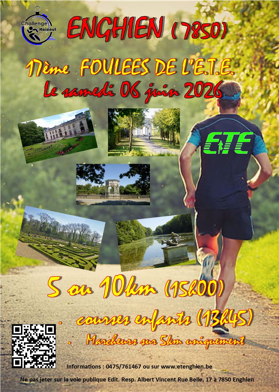 Le samedi 06 juin 2026 se déroulera dans le Parc d'Enghien la 17ème édition des Foulées de l'ETE.